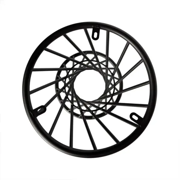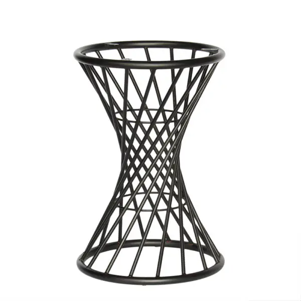 A fekete, áttört spirál alakú talapzat porszórt fémből készült, amely biztosítja a szerkezet karcállóságát és tartósságát. Bár a forma könnyűnek és dizájnosnak tűnik, a gyűrűk átmérője (46 cm) még intenzív használat mellett is biztosítja a stabilitást és az egyensúlyt. A feltűnő design és a megbízható funkcionalitás kombinációja.