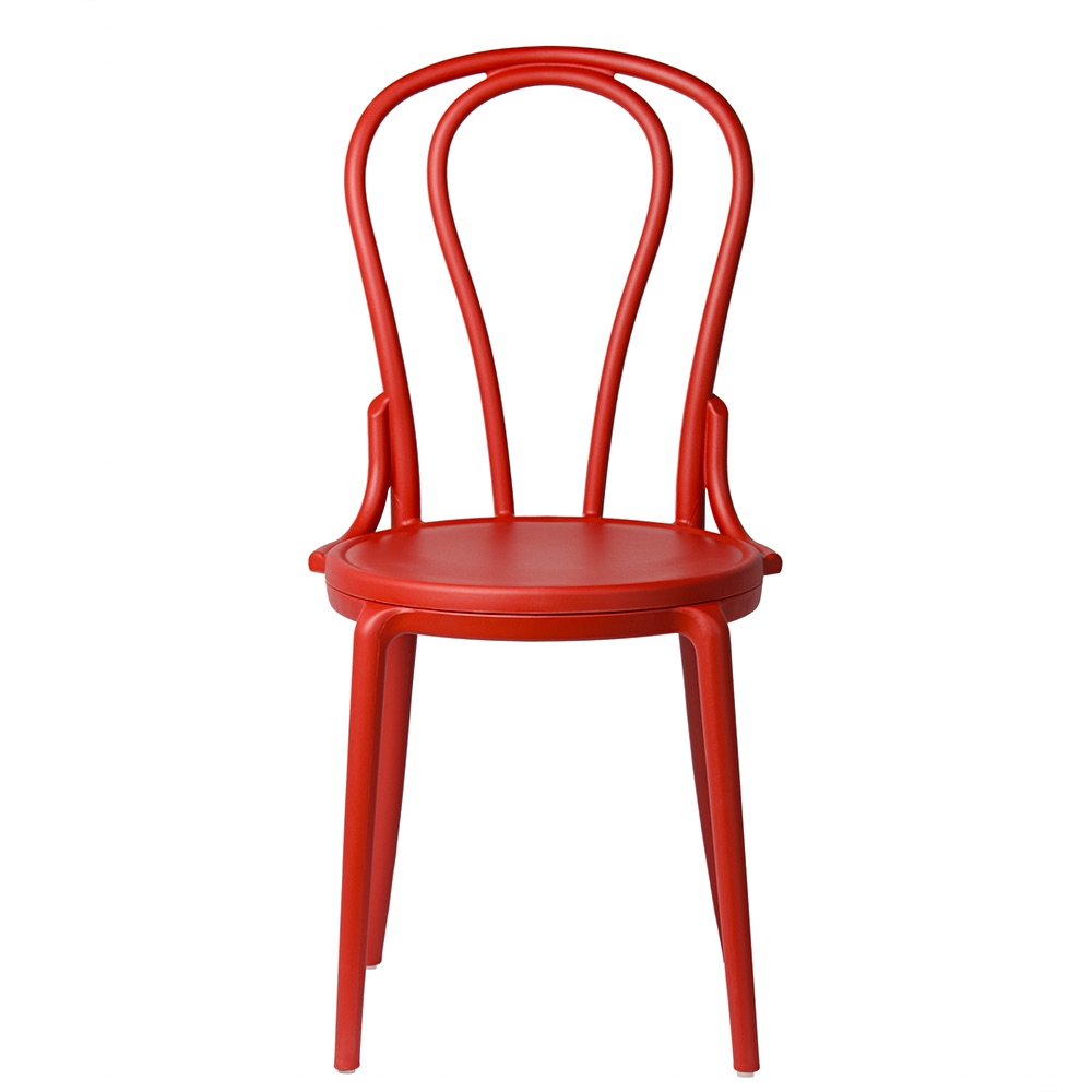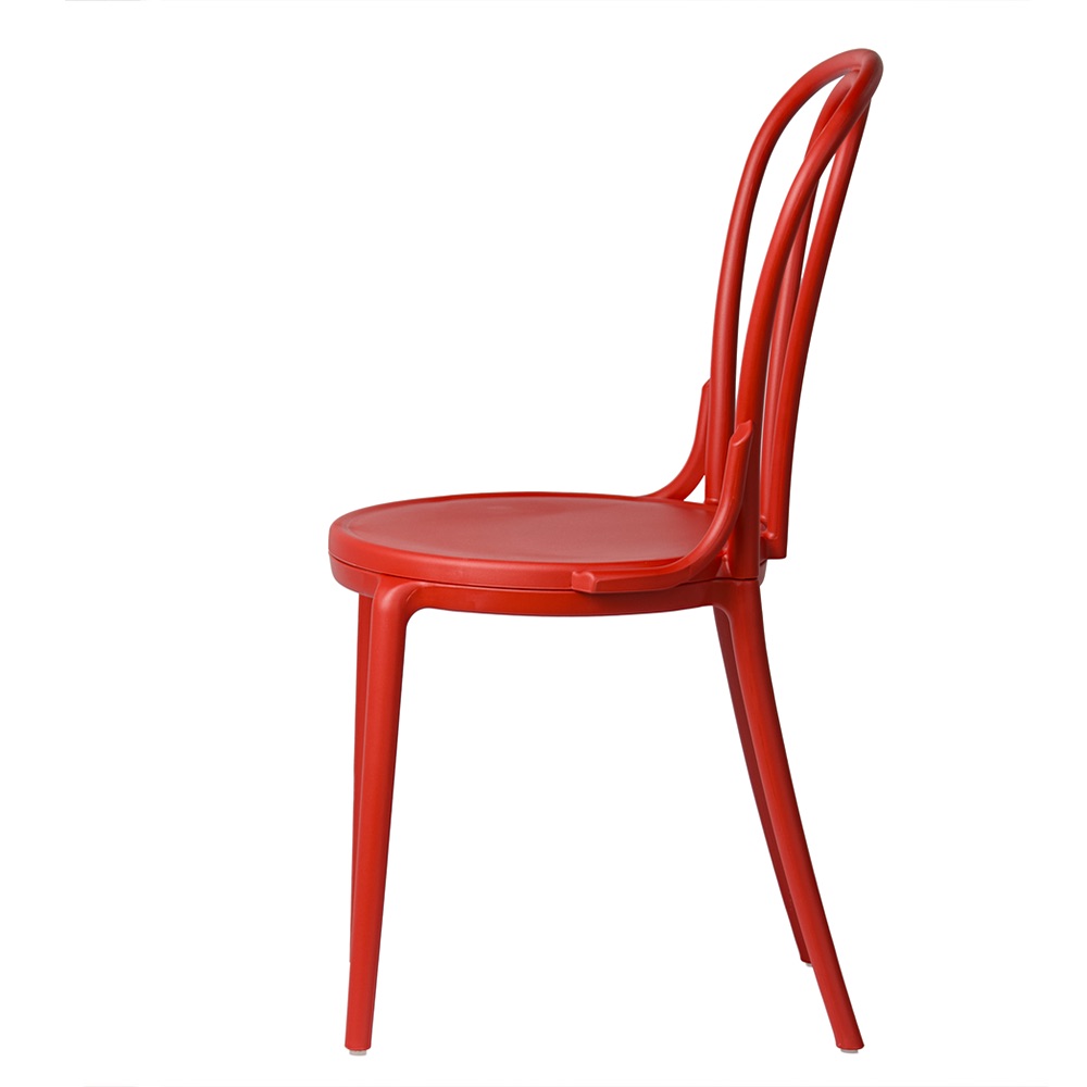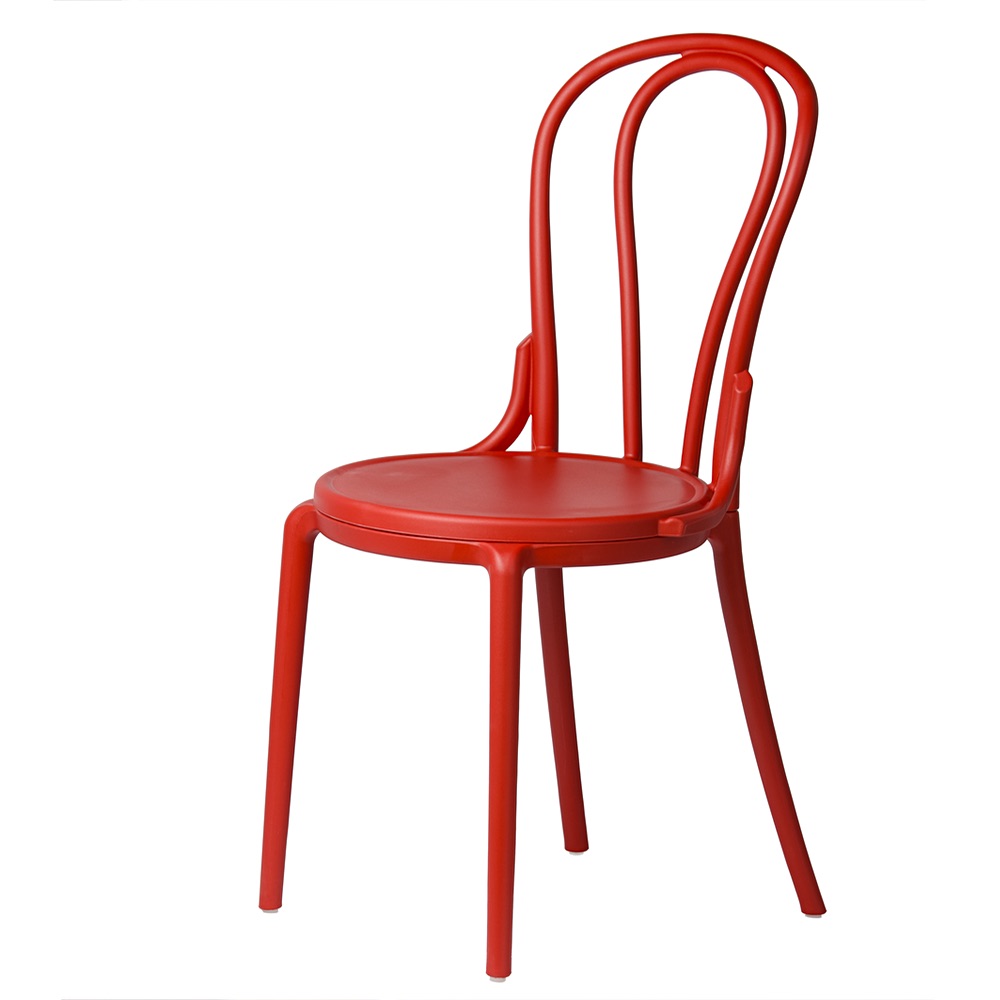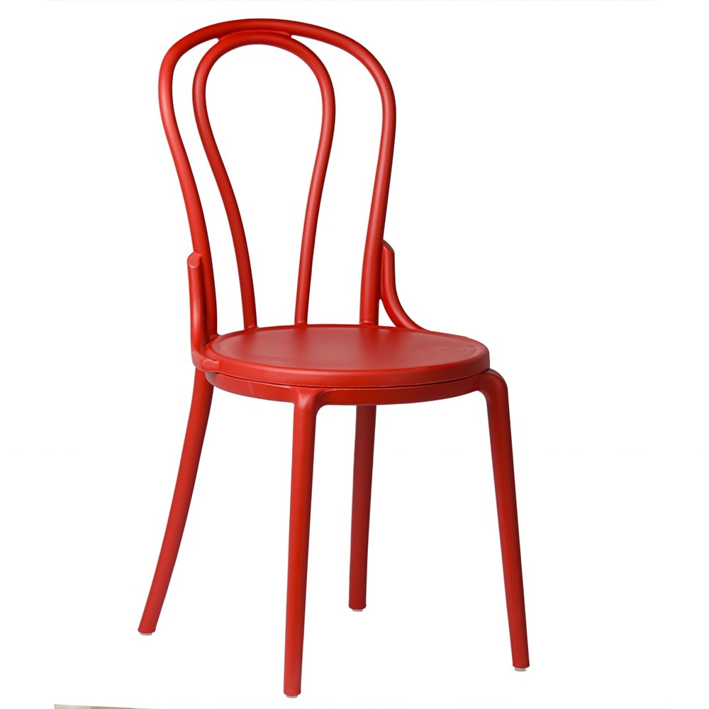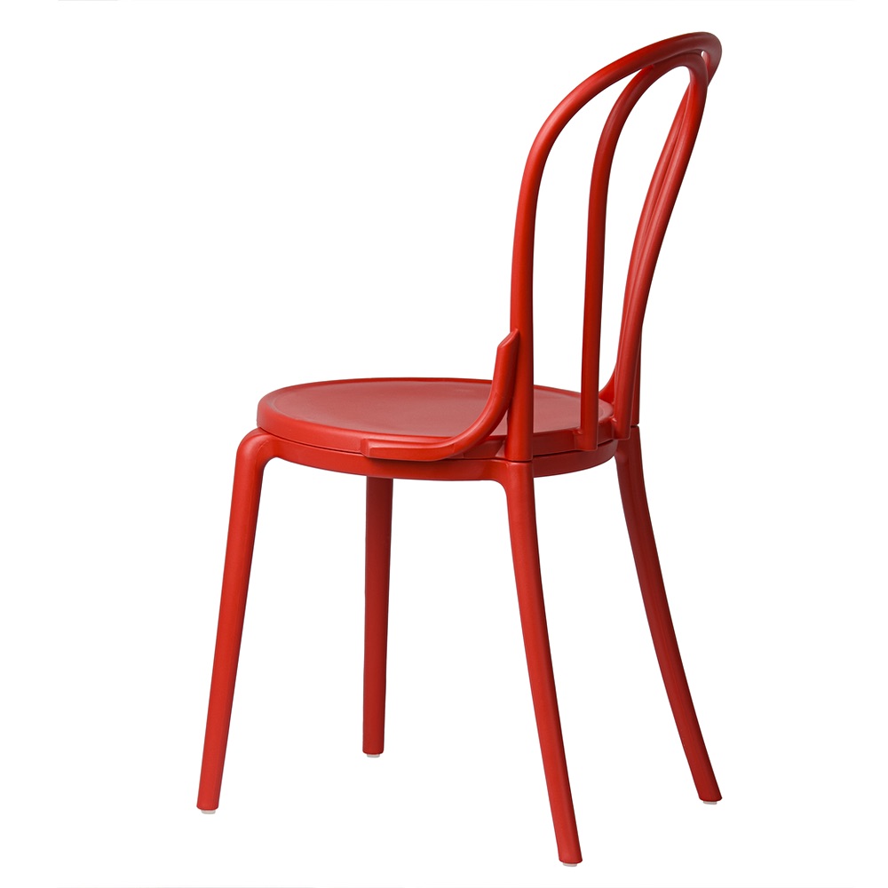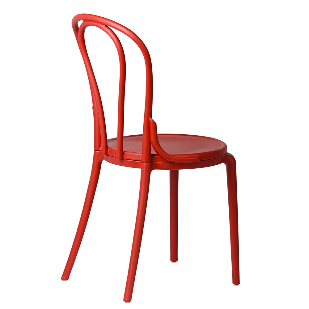 A jellegzetes, domborított háttámla díszes vonalai könnyedséget és eleganciát kölcsönöznek a széknek. Ez az a részlet, amely megkülönbözteti a modellt a szokásos műanyag székektől. A lekerekített forma miatt a szék az intenzív színe ellenére is harmonikus és egységes formát őriz. Ha egy vintage stílusú, piros székre vágyik, amely ötvözi a klasszikus stílust a modern kivitelekkel, akkor a Vintage modell a megfelelő választás.