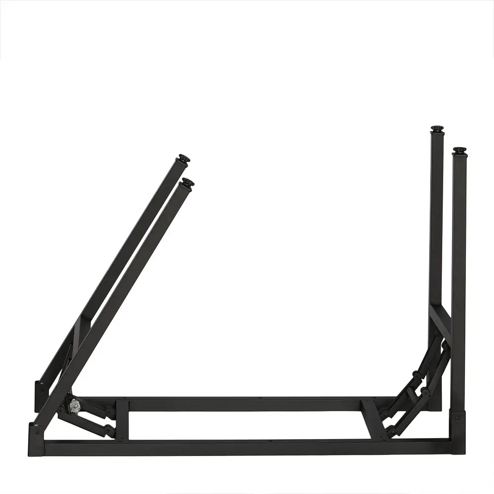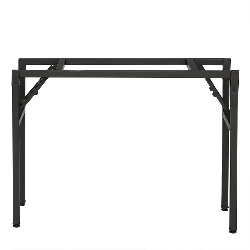 Az asztal alapja egy fekete porszórt acélváz, amely nemcsak a korróziótól és a sérülésektől védi, hanem elegáns matt felületet is ad neki. Az 1,2 mm vastag acélszerkezet stabilitást és teherbírást biztosít, a keret összecsukhatósága pedig megkönnyíti az asztal tárolását és szállítását. A lábak műanyag lábakkal vannak ellátva, amelyek megvédik a padlót a karcolásoktól, és biztosítják a bútor stabilitását még a kényes felületeken is.