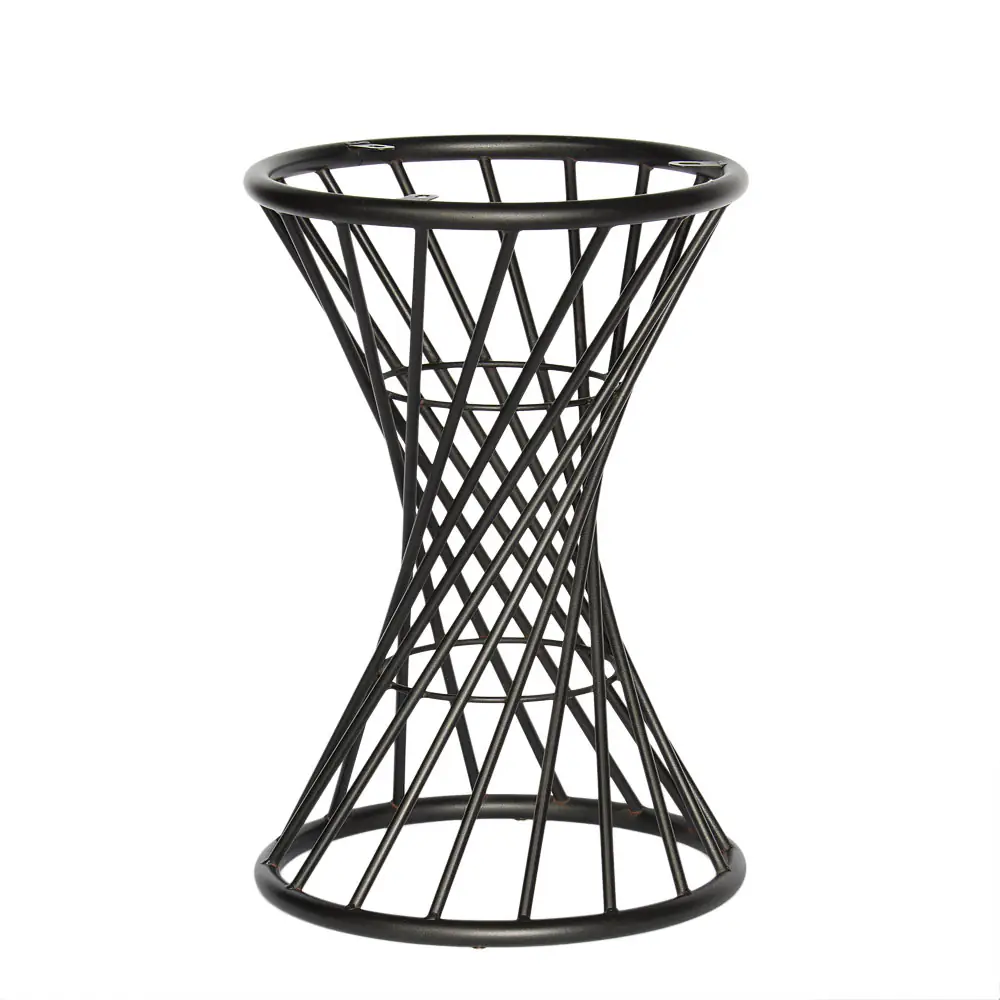 Az asztal fekete fém talapzata egyedi áttört, spirális formájú, ami megkülönbözteti a bútort a többitől. Bár a szerkezet könnyűnek és dizájnosnak tűnik, tartós porszórt fémből készült, ami biztosítja a sérülésállóságot és a stabilitást. A gyűrűk átmérője 46 cm, ami nagyobb terhelés esetén is megfelelő egyensúlyt biztosít az asztalnak.