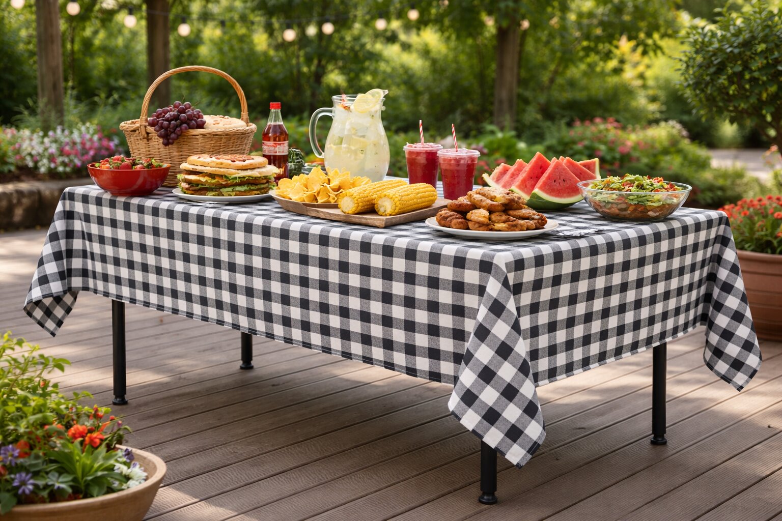 Olasz kockás terítő, 240×160 cm, fekete-fehér – elegáns asztalterítő